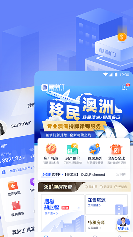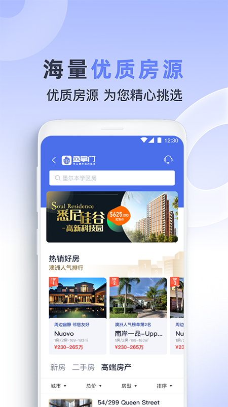 鱼掌门是一款专注于海外房产管理的实用工具,特别适合留学、工作或投资海外房产的用户。它提供了从找房、购房到租赁、报税、贷款等一站式服务,让用户在异国他乡也能轻松搞定房产事务。这款软件不仅覆盖澳洲多个主要城市,还支持中英文双语服务,彻底解决了语言不通带来的沟通障碍。无论是想买套房投资,还是临时租房过渡,都能在这里找到专业团队提供的解决方案。