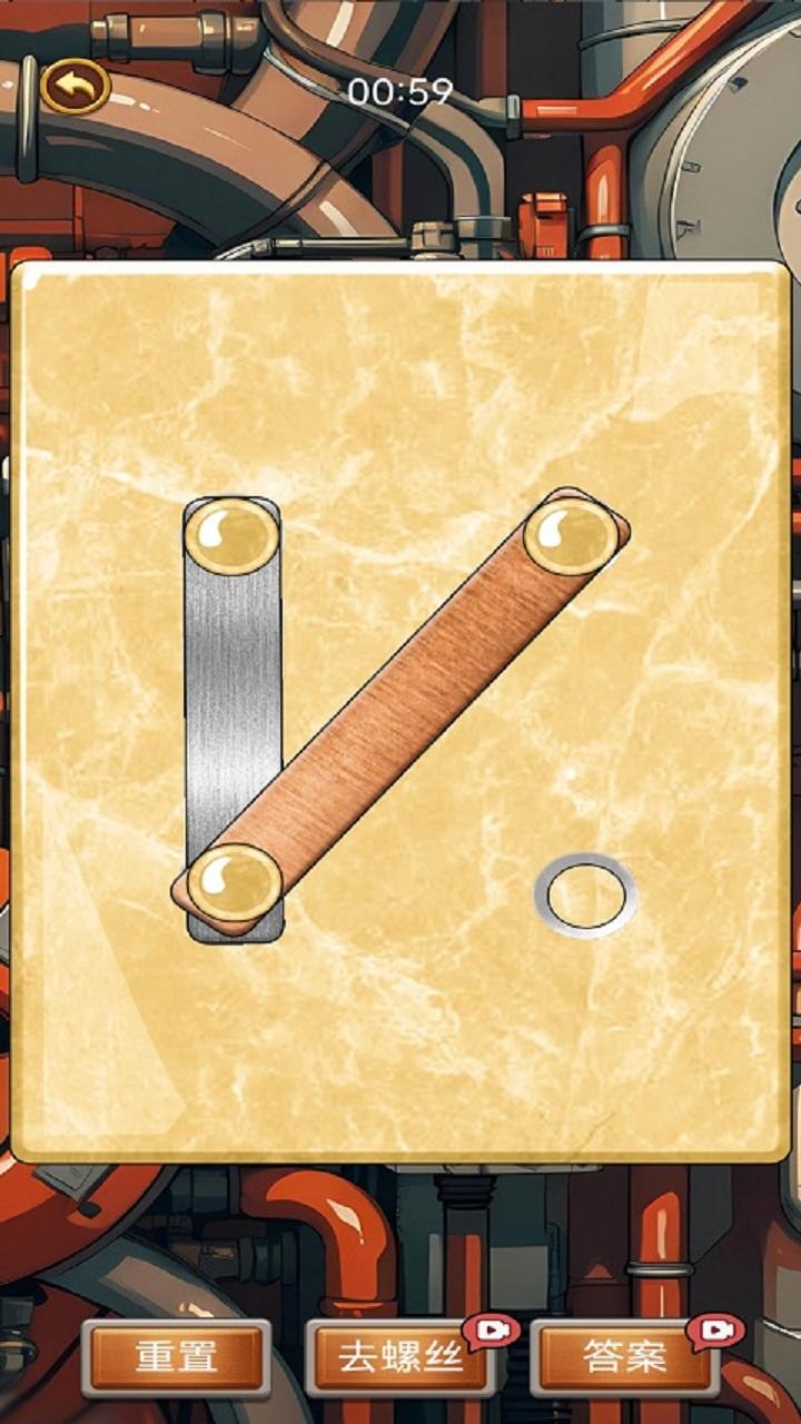 它将日常生活中的拧螺丝动作巧妙地转化为游戏机制,每一关都设置了一个需要拆卸或安装的机械装置,玩家需要根据提示一步步完成螺丝的拧动顺序。关卡推进,难度逐渐提升,会出现更多复杂的机械结构和操作逻辑。游戏画面精致,操作流畅,搭配轻快的背景音乐,营造出一种既休闲又富有成就感的体验。